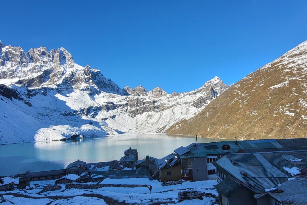 Gokyo is located at the height of 4,800 meters, after checking into your rooms with time for lunch and a short walk around its lake with grand views of Mt. Cho Oyo world's sixth-highest with Gyachung Kang that reflects on Gokyo Lake.